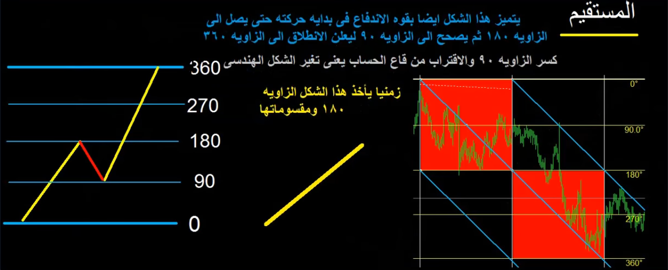 - تشير هذه الزوايا إلى أن السعر يتطلب وقتًا أطول للتحرك بنفس المسافة، مما يعني أن السوق قد يكون في اتجاه قوي.